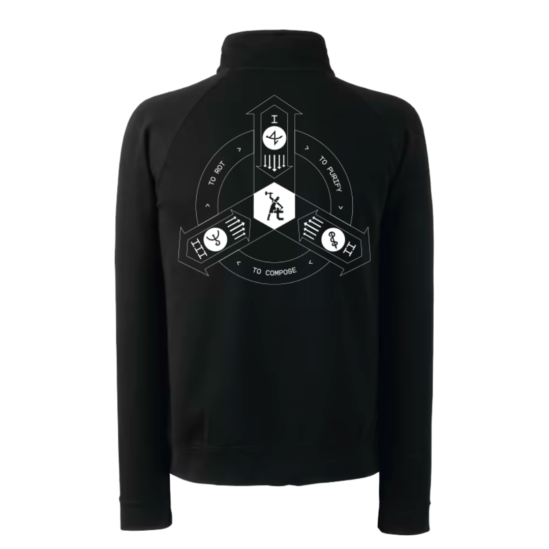 - Grafica posteriore: composizione geometrica disegnata da Nic Paranoia, accompagnata dal motto "To Rot – To Purify – To Compose"